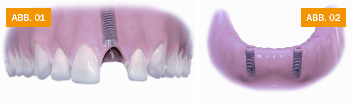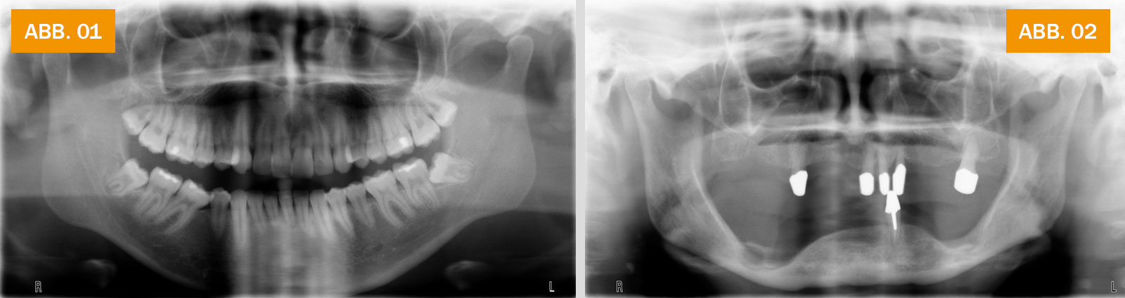 ABB. 02: Im Unterkiefer eingebrachte Implantate zur Fixierung einer Prothese
